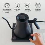 کتری بی‌نظیر برای ریختن قهوه: دهانه‌ی دقیق که برای ریختن بی‌نقص طراحی شده است، جریانی روان و پایدار را برای قهوه‌ای با طعم بهتر تضمین می‌کند. کنترل دما تا درجه‌ی دلخواه و صفحه نمایش LCD با وضوح بالا به شما امکان می‌دهد آب را به سرعت گرم کنید و تنظیمات را به راحتی انجام دهید.
